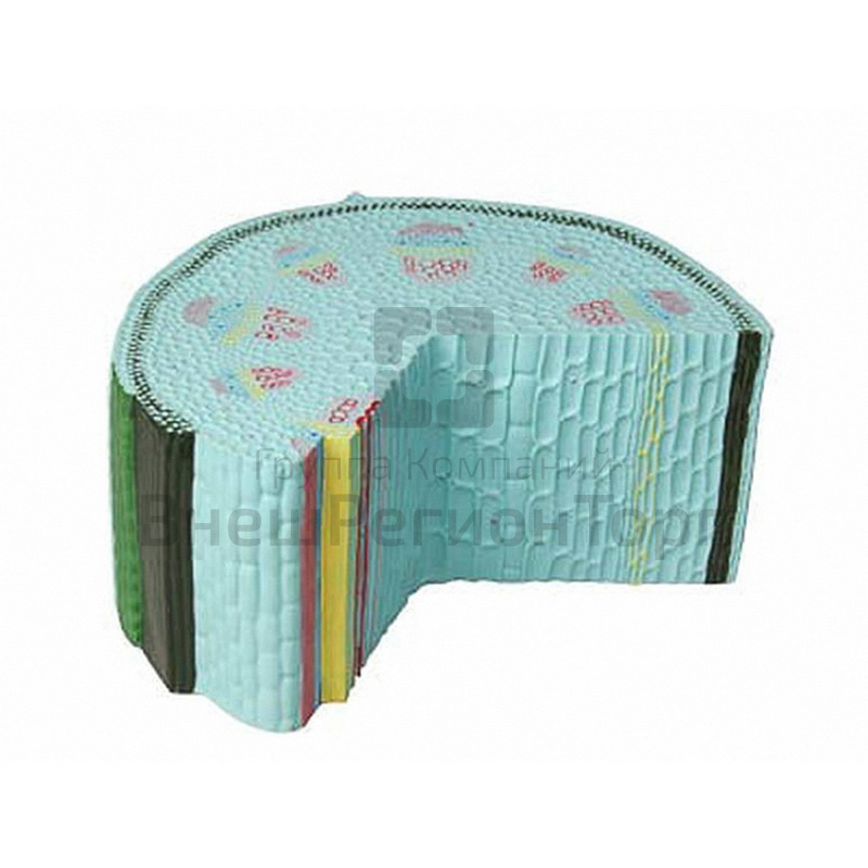 Модель изготовлена из пластмассы, цветная. Модель демонстрирует поперечный и продольный срез стебля растения, позволяет рассмотреть следующие детали строения стебля растения: чечевичка, кора (кожица, пробка, луб, волокна, ситовидные трубки), камбий, древесина, клетки сердцевины.