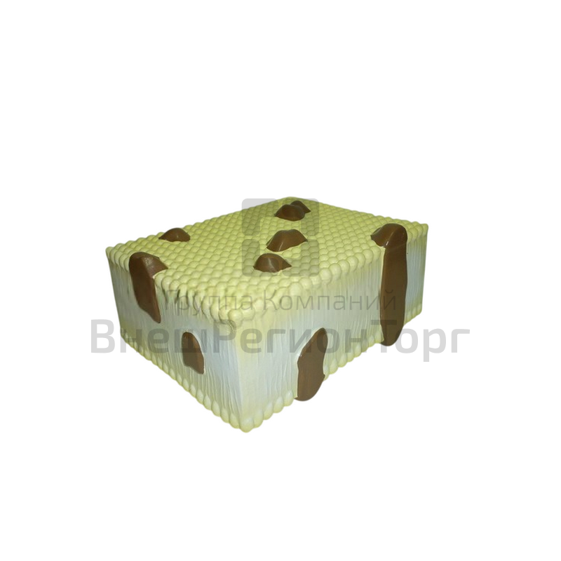 Модель изображает строение клеточной оболочки (плазмалеммы). На модели представлены следующие детали строения клеточной оболочки: два слоя молекул жировых веществ - липидов и встроенных в них белковых молекул. Модель изготовлена из пластмассы и раскрашена.