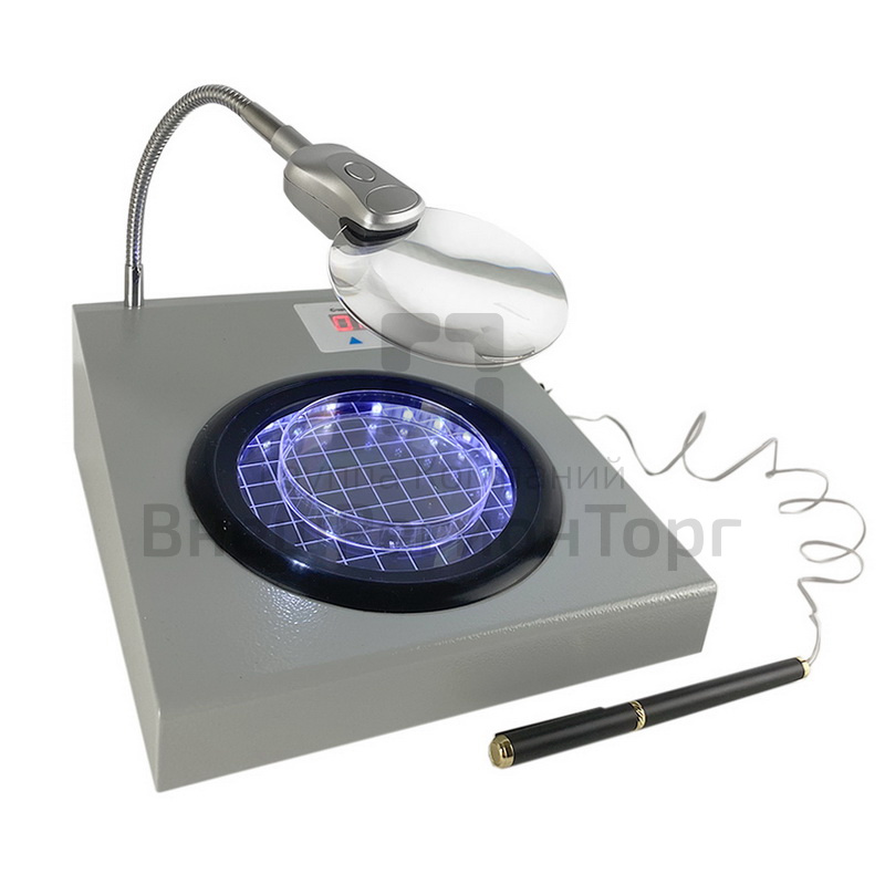 - В счётчик встроена лупа с увеличением 2х на длинном подвижном держателе. Держатель можно изгибать как удобно.