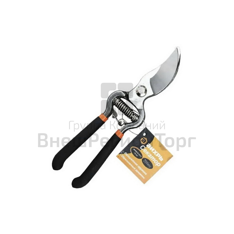 Секатор оснащен возвратной пружиной, что позволяет работать одной рукой, а рукоятки имеют качественное покрытие для удобного хвата. Секатором обрезать ветки диаметром 15 – 20 мм.
