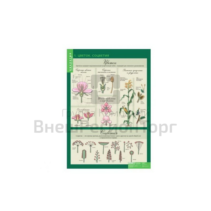 Комплект таблиц по биологии «Размножение цветковых растений» (21шт. 550х850мм) ламинированные.
