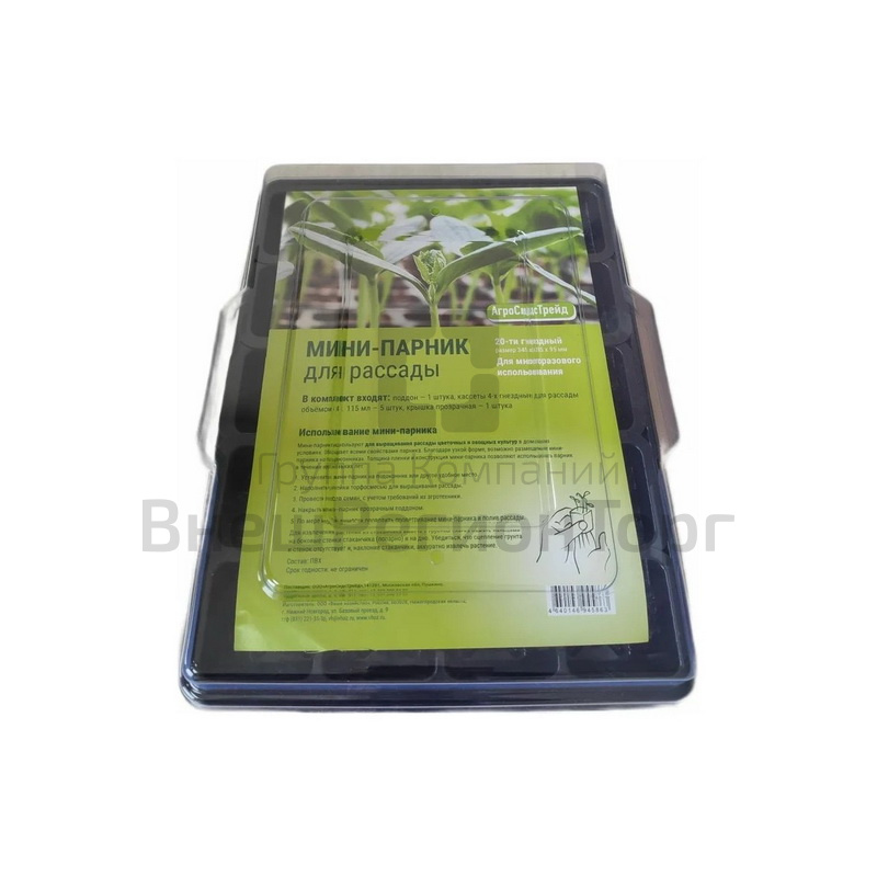 Имеет 20 гнезд для посадки, размер 345 х 285 х 95 мм.