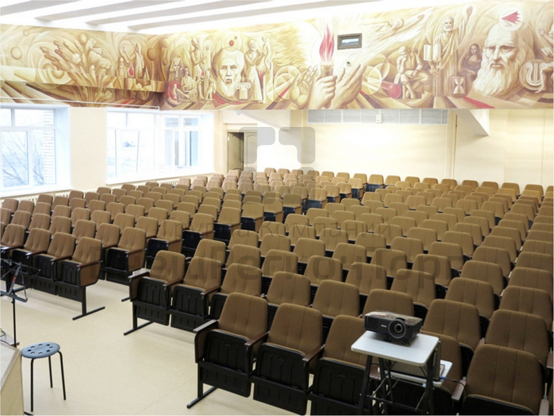 Комфортабельное мобильное кресло для конференц-зала изготавливается секциями по 2,3,4 места. Секции мобильные, предназначены для переноски двумя людьми, вес секции (трехместной) 34 кг, при желании могут крепиться к полу. Сиденье откидное с возвратным механизмом гравитационного типа. Крепление сиденья к несущему каркасу кресла оснащенны осями вращения и упорными площадками с демпфирующими пластиковыми вставками для устранения стука «металл в металл». Подлокотник металлический с накладкой из массива бука.