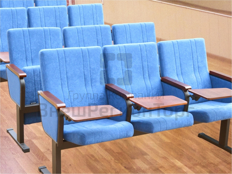 - пюпитр эргономичный – не имеет острых углов и граней, трансформируется в трех плоскостях, система откидывания «Антипаник» позволяет свободно вставать из кресла даже во время паники;