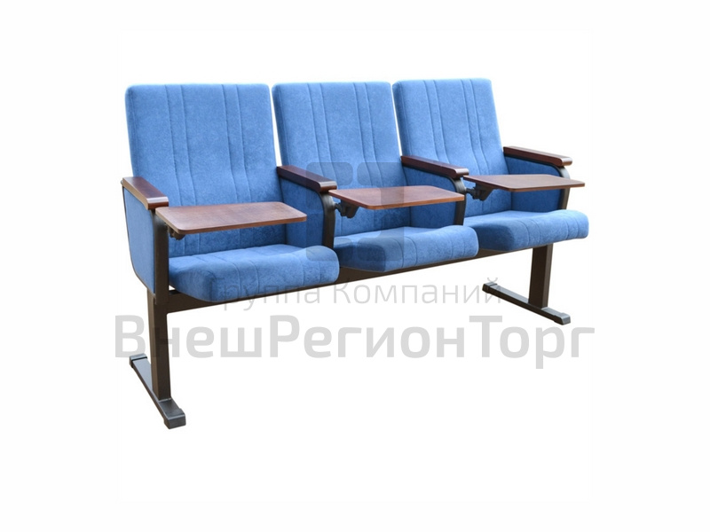 Кресло для конференц-зала, мобильное. Изготавливается на едином металлическом каркасе из коробчатого профиля секциями по 2,3 места, каркас опирается на 4 пластиковые ножки-опоры.