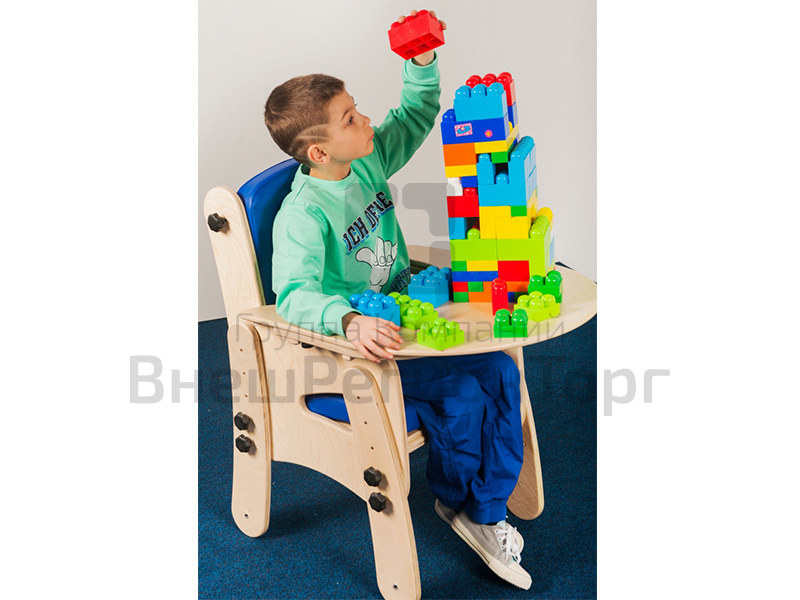 Полукруглый столик в дополнение к ортопедическому детскому стулу для занятий и игр. Крепится непосредственно к стулу и выдвигается на 7,5 см.