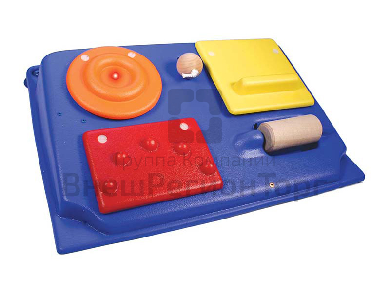Данный развивающий центр помогает развивать способность детей понимать причину и следствие наблюдаемых явлений. Нажатие/воздействие на ярко-желтую пластину включает радио, на красную - вибрацию, на деревянный ролик - гудок, на шарик - музыкальную шкатулку и на оранжевую пластину – яркий огонек.