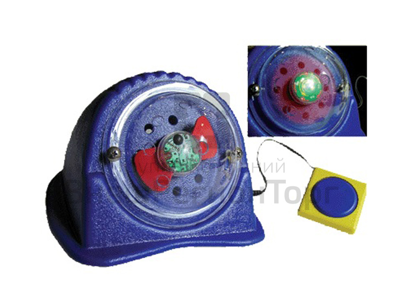 Внешний переключатель необходимо соединить с игрушкой. Далее надо надать на кнопку переключателя, и под куполом игрушки начнут появляться и вращаться разноцветные огни. Интенсивность появления и вращения огней зависит от силы нажатия на переключатель.