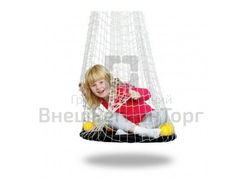 Подвес для качелей, закрытый сеткой, препятствующей падению ребенка, падению игрушек, а также создающий атмосферу защищенности и "домика".