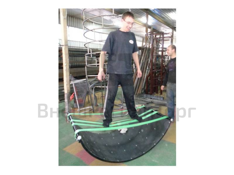 Тренажер равновесия изготовлен в виде полусферы с натянутыми на ней стропами. Предназначен в качестве реабилитационного оборудования.