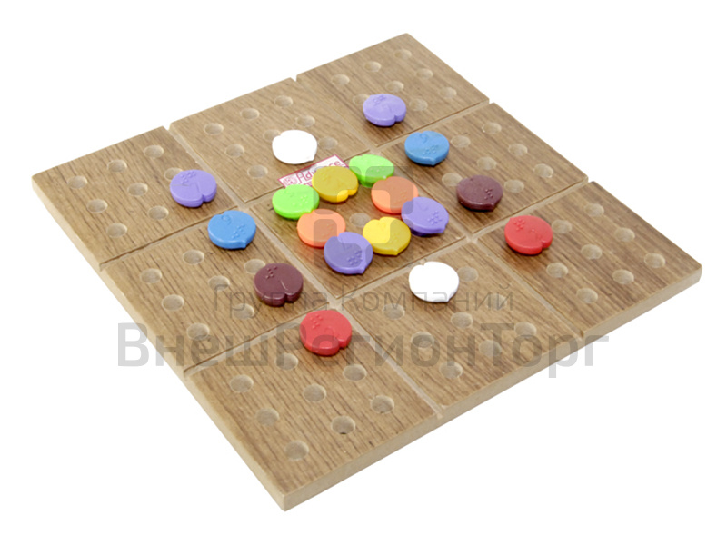 Игровая поверхность поделена на 9 квадратов по 9 отверстий (ячеек) в каждом.