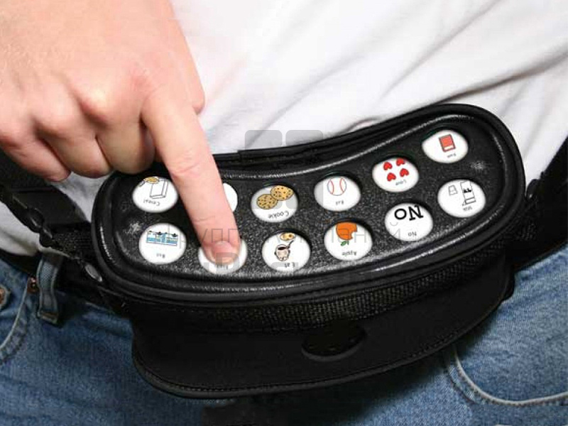 Портативный коммуникатор для ношения на поясе. Общее время для записи - 300 секунд. Рассчитан на 60 сообщений по 5 секунд каждое.
