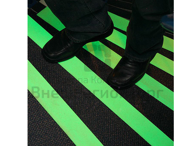 Светонакопительная полоса предназначена для поглощения энергии от любого рассеянного источника света, будь то лампа накаливания, флуоресцентная лампа или солнечный свет, что происходит благодаря химической реакции. С ее помощью выделяются начало и конец лестничных маршей и другие препятствия.
