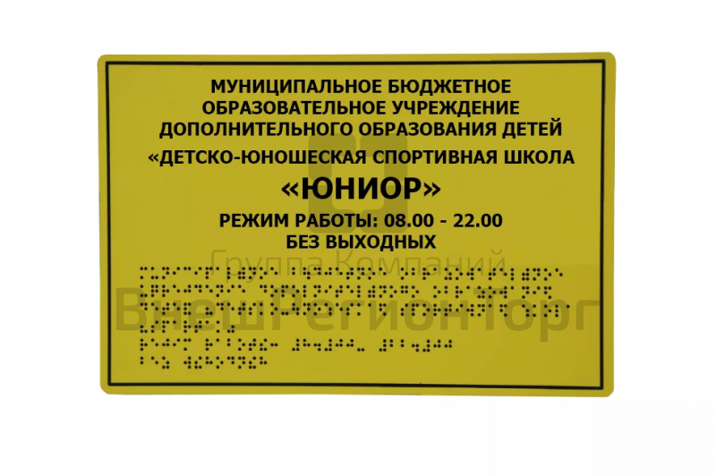 Текстовая информация и графические изображения наносятся рельефно-тактильным способом, при необходимости текст дублируется шрифтом Брайля.