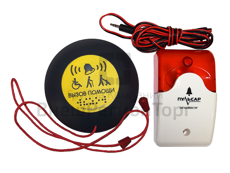 Кнопка вызова антивандальная всепогодная со шнурком + выносной светозвуковой оповещатель