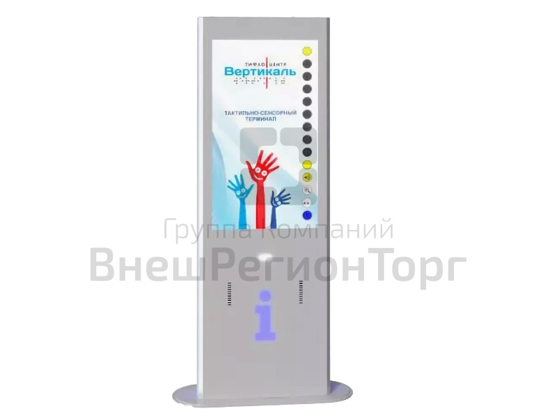Тактильно-сенсорный информационный терминал Tactile-VERT-1(43)V разработан специально для возможности его использования тотально слепыми и слабослышащими людьми, а также инвалидами-колясочниками в качестве информационного устройства.