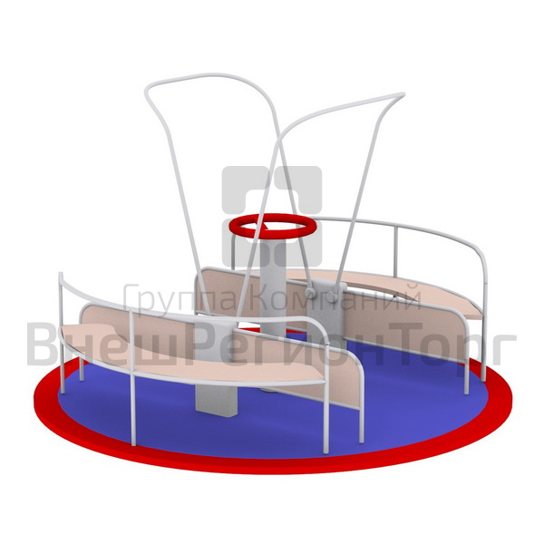 Карусель для инвалидов-колясочников. Рассчитана на двух лиц в инвалидных креслах и сопровождающих их лиц. Для детей колясочников от 5 до 12 лет.