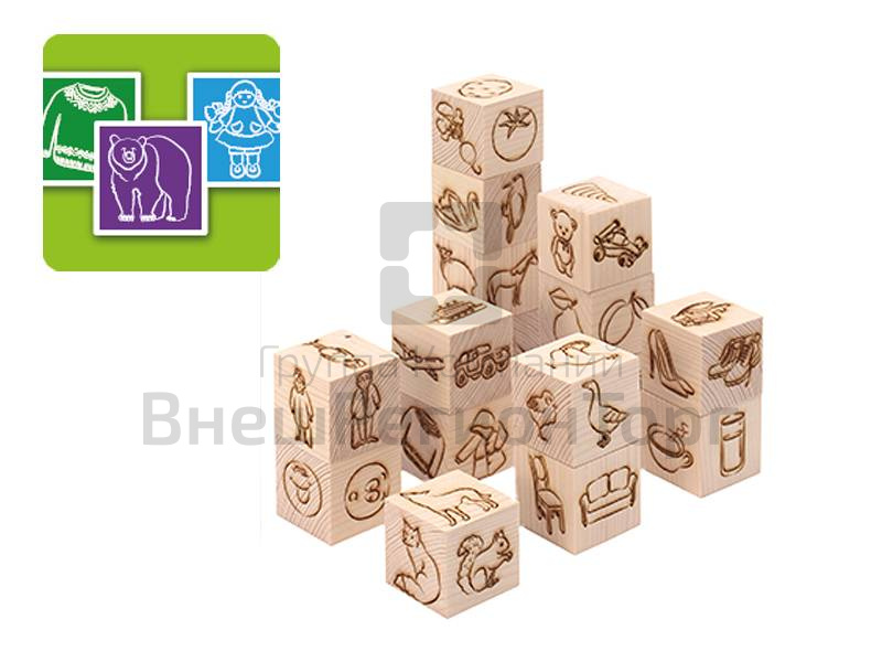 Комплект включает 2 набора кубиков. На гранях первого изображены предметы, относящиеся к 12 лексическим темам. На гранях второго помещены изображения, отражающие свойства предметов: цвет, форма, точки от 1 до 6, куб, разный материал, семья, эмоции. Картонные карточки с изображением картинок 1 группы, фишки, фирменная сумка, методическое пособие по коррекционно-педагогической работе, методическое руководство по использованию набора.
