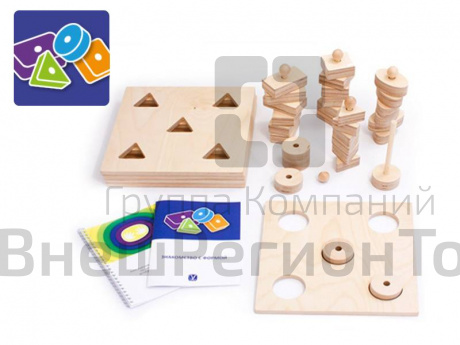 Игровой набор предназначен для формирования представлений детей о геометрических фигурах (узнавание, сличение, знание названий, самостоятельное называние). Набор создан на основе классического пособия "Рамки и вкладки", но с внесением существенных конструктивных изменений, что обеспечивает удобство выполнения предлагаемых заданий (захват, удержание, нанизывание и пр.).