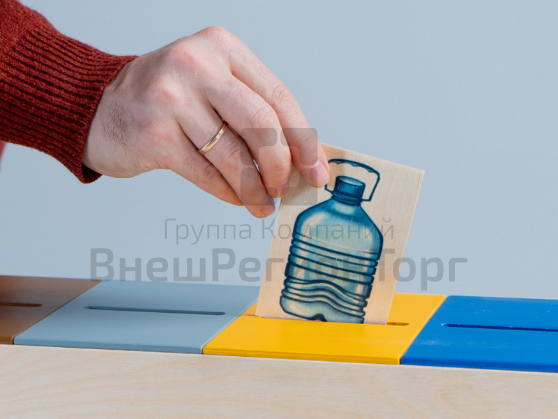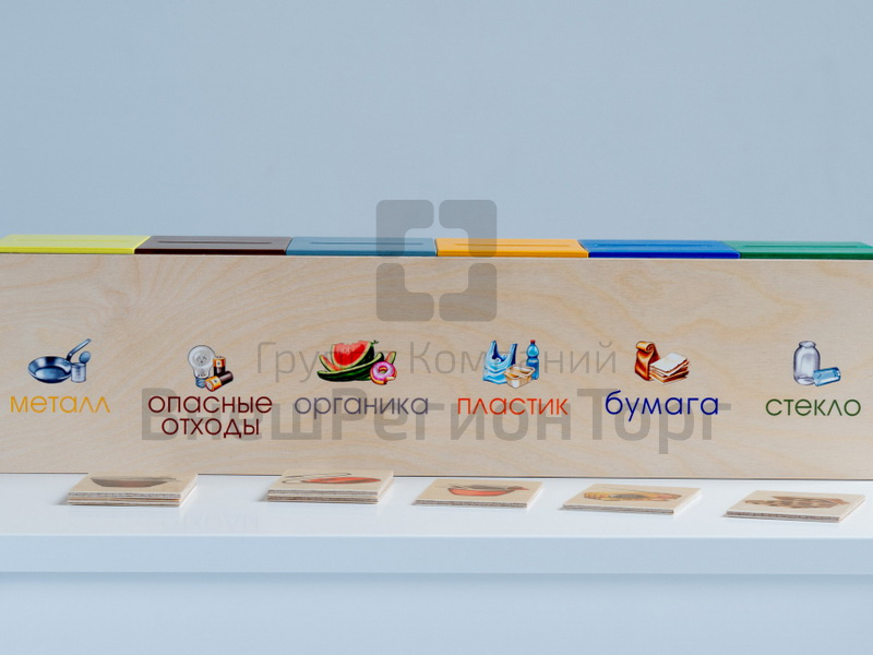 - Опасные отходы; - Дидактическая игра по сортировке мусора. Комплект контейнеров для сортировки карточек с изображением типов мусора, карточки с изображением мусора – 60 шт.;