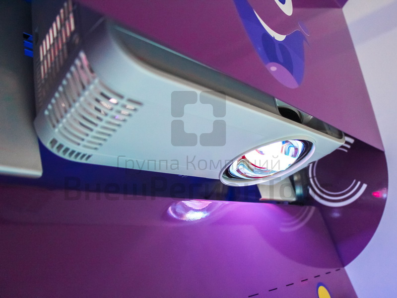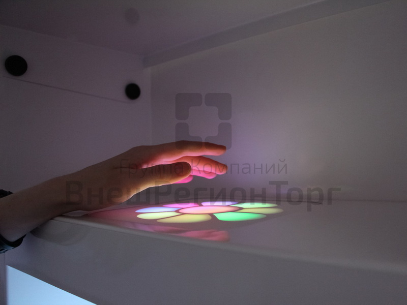 Вместительная полка для ноутбука, методического пособия, документов. Программное обеспечение: 22 игровых режимов и 21 эффект пола + режим “Ожившие рисунки”, в котором дети раскрашивают трафареты игрушек и с помощью сканера “оживляют” их на полу. Площадь игрового пространства до 3 м кв.