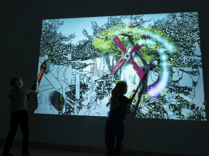 "Мастер Фломастер" - это комплекс из проектора, датчиков и камеры, которые, работая вместе, превращают стену в холст с набросками черно-белых "неживых" рисунков, которые детям предстоит раскрасить.