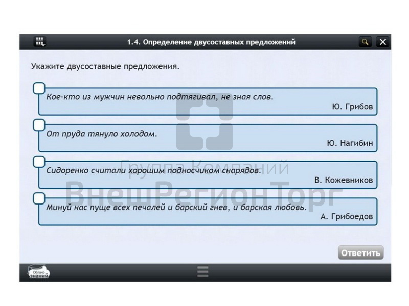 У нас вы можете купить Электронные образовательные ресурсы по предмету Русского языка (7 класс), сравнить цены, получить прайс-лист, получить отзывы реальных покупателей. Мы соответствуем требованиям ФГОС, ГОСТ и СанПиН. Мы работаем на основании федеральных законов No44-ФЗ и No223-ФЗ.