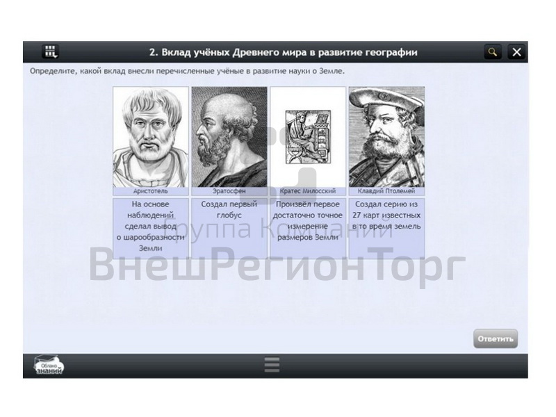 Приложение «География, 8 класс» является один из продуктов, представленных в рамках образовательной платформы «Облако знаний». Цель проекта - помочь учащимся школ устранить недочеты в знаниях школьной программы, подготовиться к проверочным испытаниям. Для учителя «Облако знаний» предоставляет базу интерактивных домашних и контрольных заданий. Все учебные пособия соответствуют ФГОС и могут быть использованы в качестве дополнительного материала при работе с большинством одобренных в РФ учеников