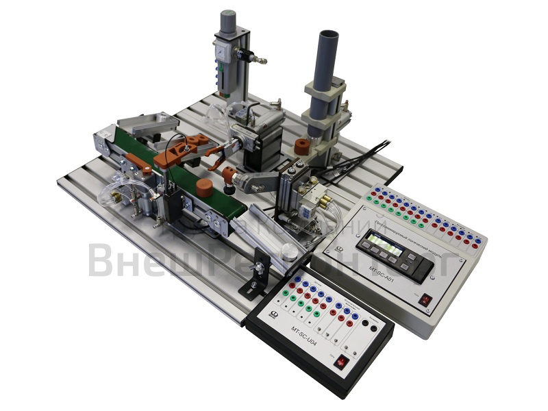 Комплект представляет собой набор из четырех действующих модулей промышленных механизмов с пневматическими и электрическими приводами, а также устройств их ручного и программного управления. Каждый из четырех механизмов может работать как самостоятельно, так и быть встроенным в производственную линию с другими механизмами.
