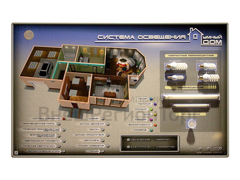 Подробное описание Интерактивный светодинамический стенд "Система освещения умного дома" с макетными образцами