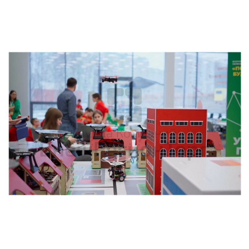 - А также макеты вспомогательных городские объектов: пожарная часть, больница, парковка для каждого робота