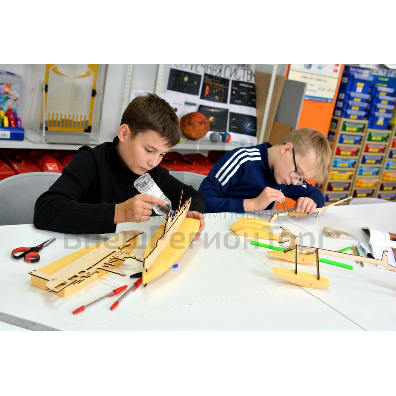 В комплект входит все необходимое для сборки, дизайна моделей и организации соревнований. В ходе занятий дети научатся самостоятельно строить судомодели, работать с ручными инструментами, получат знания по истории кораблестроения, изучат основные физические законы в области судомоделирования, условия плавания тел и механизм работы резиномоторного двигателя. Кроме того, благодаря включенным творческим наборам для индивидуализации моделей, у детей развивается художественное видение. Таким образом, у учеников сформируется инженерное мышление и ориентация на продолжение обучения в судостроительной области.
