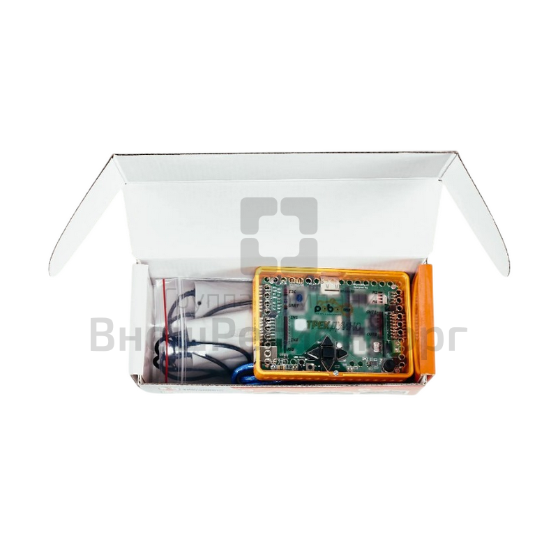 Плата контроллера заключена в корпус, который лишает доступа к некоторым портам, которые могут понадобиться только «продвинутым» пользователям (винтовой клеммник для внешнего питания, интерфейс Arduino, джамперы переключения напряжения питания портов IN и OUT межу 3В и 5В, джампер для конфигурирования Bluetooth и т.д.). Для