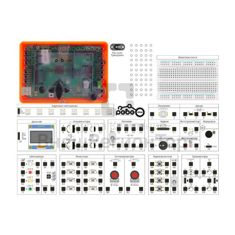 Образовательный комплекс «Роботрек Электротехника» позволит детям на практике проводить опыты с электричество, создавать электрические цепи, проверять работу датчиков и исполнительных устройств на базе контроллера Трекдуино.