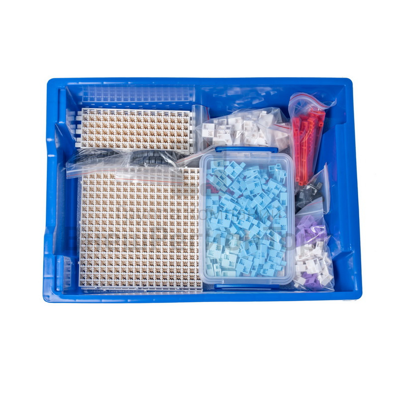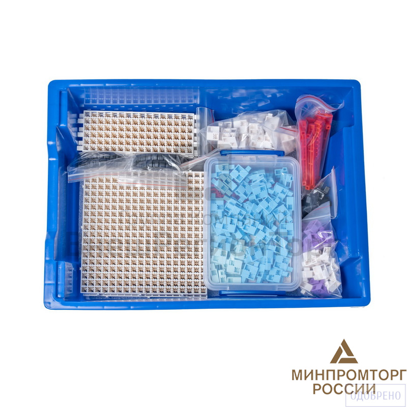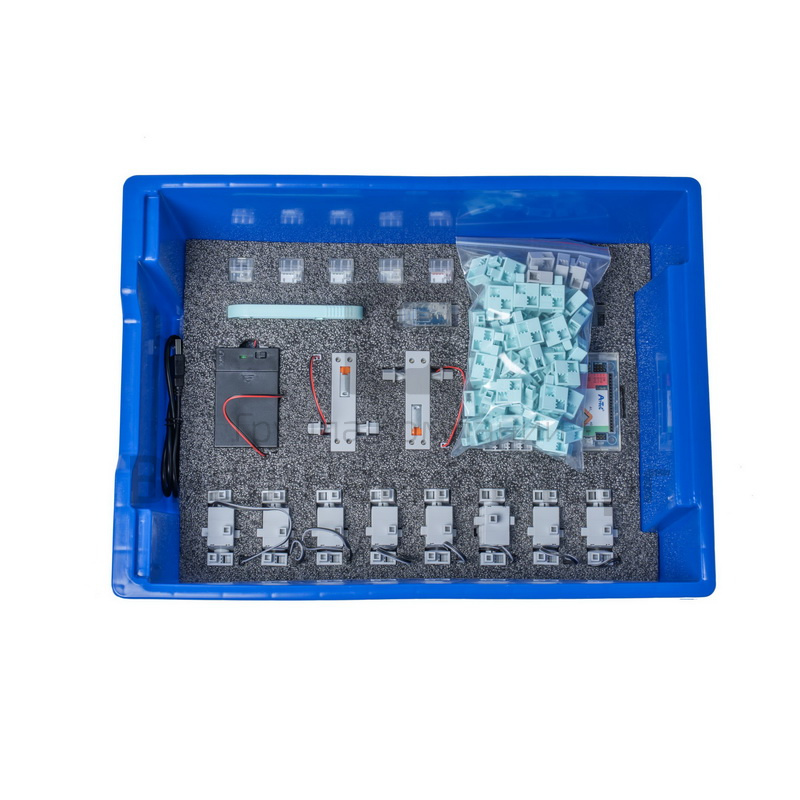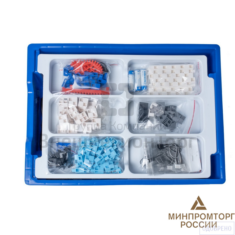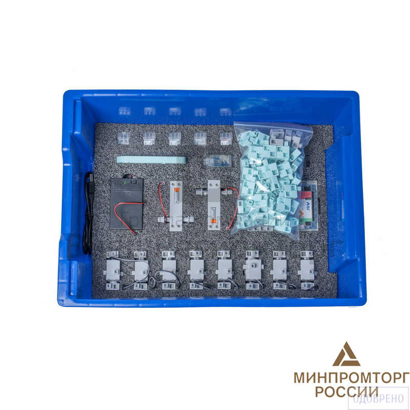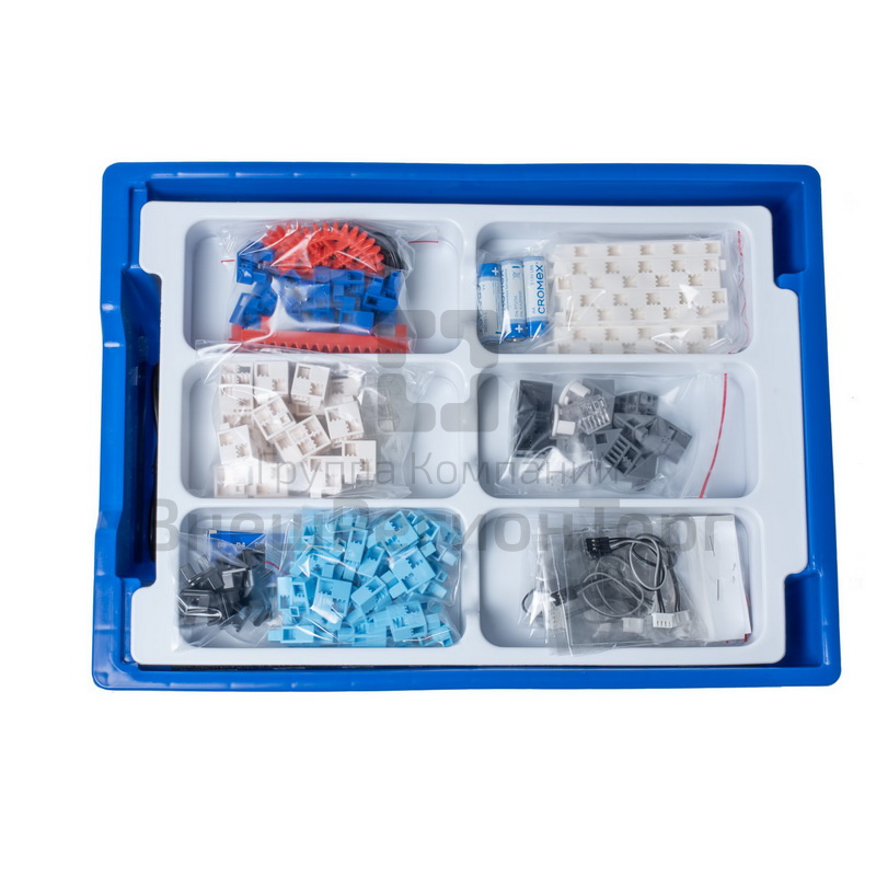 В наборе используется плата открытой архитектуры, датчики (датчик касания, инфракрасный датчик, датчик звука, датчик света) и исполнительные механизмы (моторы с редуктором, сервомоторы, зуммер, светодиоды). Все элементы выполнены в конструктиве единого стиля. Весь набор укомплектован в пластиковую систему хранения с ложементом, которая закрывается прозрачной пластиковой крышкой на защелках для обеспечения наблюдения за содержимым.