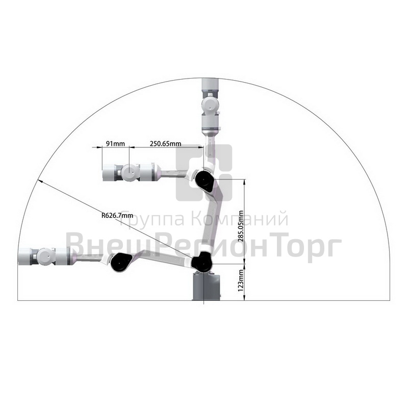 - Особенности степеней свободы: J1 - ±154 градусов, J2 - 0~179гр., J3 - -150~0гр., J4 - -106~106гр., J5 - -52~80гр., J6 - ±100гр.