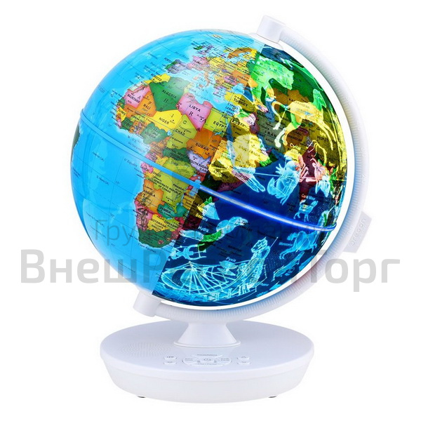 Доступны два режима работы интерактивного глобуса: днем можно изучать политическую карту и проводить занятия в дополненной реальности, а вечером включение подсветки делает глобус ночником с уютным синеватым светом. Его поверхность превращается в темное звездное небо, на котором сияют 88 созвездий и фигуры знаков зодиака. Портативная модель питается от USB-порта компьютера или от обычных пальчиковых батареек.