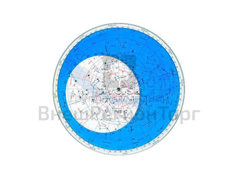 Подвижный круг предназначен для изучения суточного и годового изменения вида звездного неба в средних широтах северного полушария Земли (около 50–60° северной широты), а также определения моментов кульминации звезд и Солнца. Контур овального выреза (прозрачной части) на подвижном круге – линия горизонта, на которой отмечены точки юга, севера, запада и востока. Линия, соединяющая точки севера и юга, – неподвижный небесный меридиан.