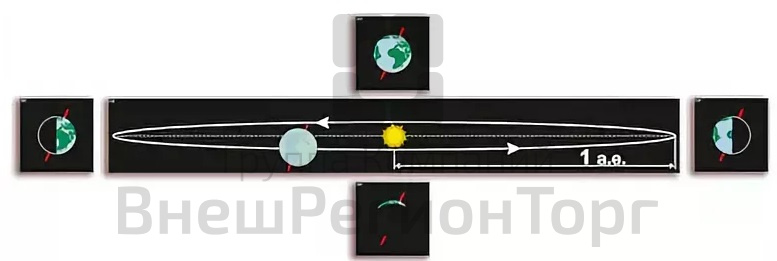 КОМПЛЕКТНОСТЬ: карточка с изображением орбиты Земли – 1 шт., карточка с изображениями осей вращения планет – 1 шт., карточки с изображениями Земли в разных точках орбиты – 4 шт., карточка с изображениями наклона орбит планет к плоскости земной орбиты – 1 шт., руководство по эксплуатации с методическими рекомендациями – 1 шт.