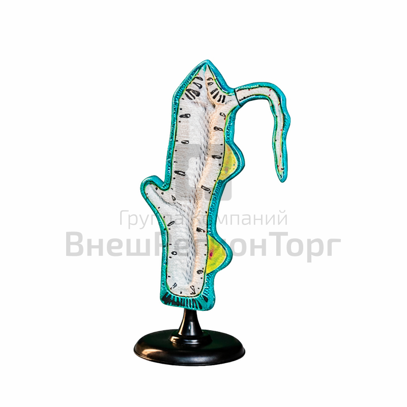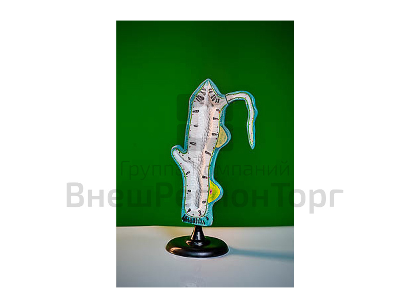 Модель высотой около 40 см, изготовлена из пластмассы. Модель демонстрирует внешнее и внутреннее строение пресноводной гидры. Модель раскрашена в естественные цвета.