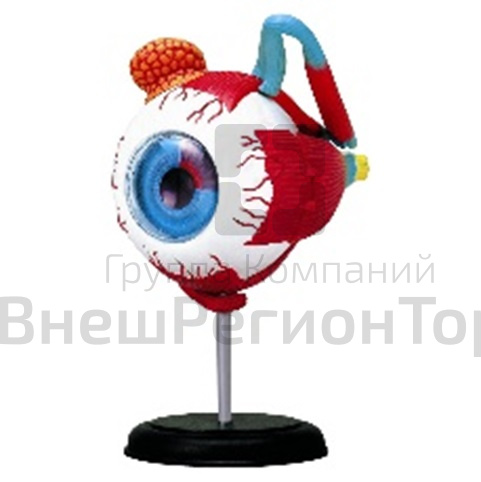 Модель высотой около 20 см, изготовлена из пластмассы и установлена на пластмассовой подставке. Модель является разборной, изображает глаз человека, демонстрирует строение зрительного анализатора. Модель раскрашена.