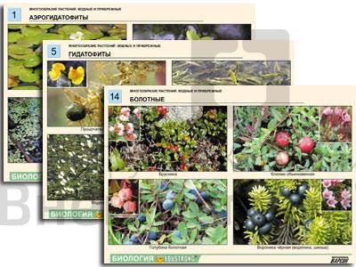 Подробное описание Комплект таблиц по ботанике "Многообразие растений. Водные и прибрежные", А4, 16 шт.