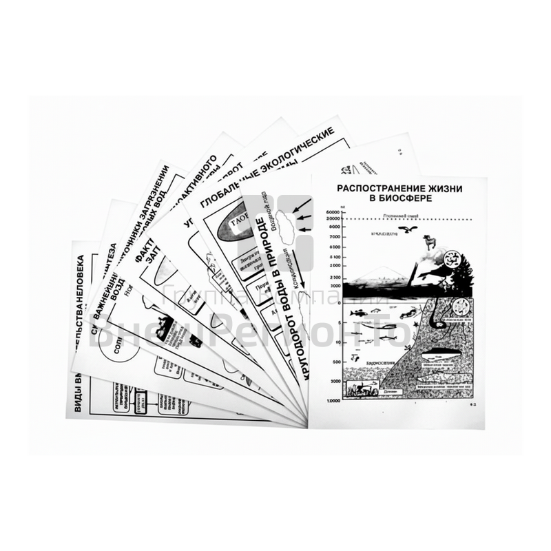 Подробное описание Комплект таблиц по экологии "Биосфера - глобальная экосистема. Вмешательство человека." А4
