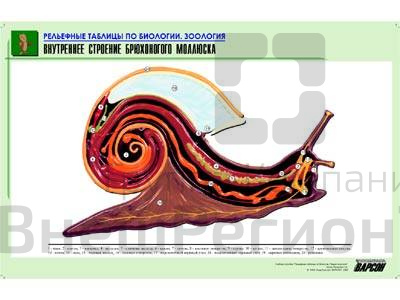 Подробное описание Рельефная таблица Внутреннее строение брюхоногого моллюска, А1