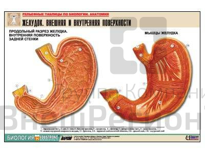Подробное описание Рельефная таблица Желудок. Внешняя и внутренняя поверхности, А1