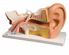 Модель высотой около 30 см, изготовлена из пластмассы и установлена на пластмассовой подставке. Модель является разборной, изображает ухо человека в разрезе, демонстрирует строение слухового и вестибулярного аппаратов. Модель раскрашена.