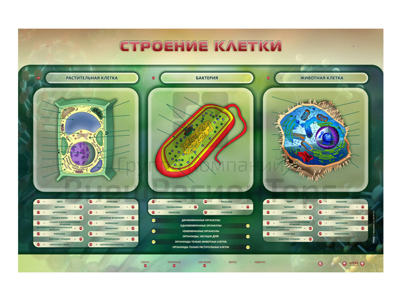 Электрифицированный стенд предназначен для изучения строения клетки и проведения интерактивного тестирования по