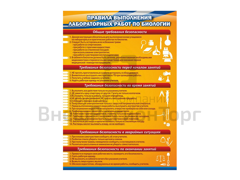 Подробное описание Стенд "Правила выполнения лабораторных работ по биологии"