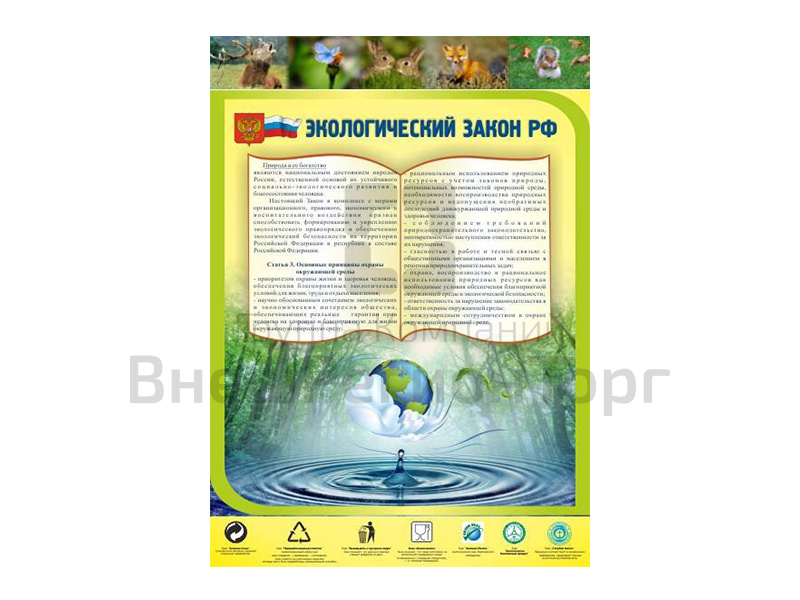 У нас вы можете купить Стенд Экологический закон РФ, сравнить цены, получить прайс-лист, получить отзывы реальных покупателей. Мы соответствуем требованиям ФГОС, ГОСТ и СанПиН. Мы работаем на основании федеральных законов No44-ФЗ и No223-ФЗ.