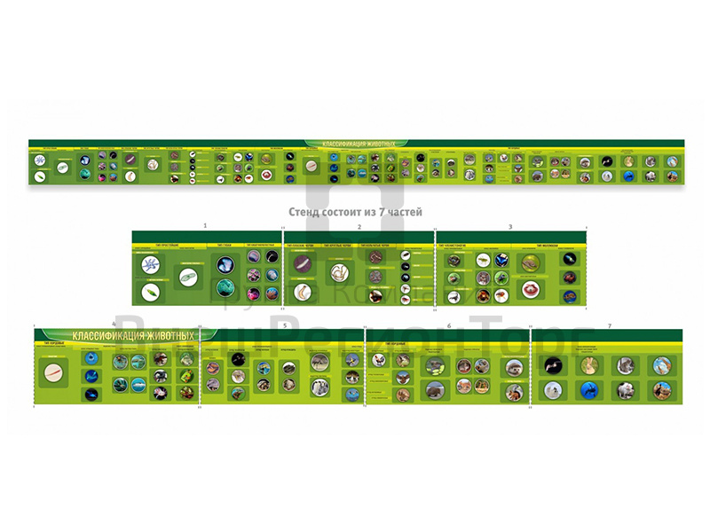 Подробное описание Стенд-лента Классификация групп животных (7 частей), 870х60 см